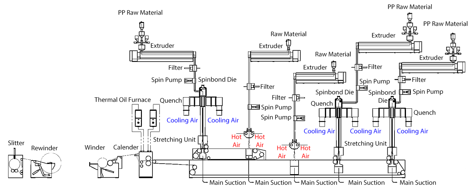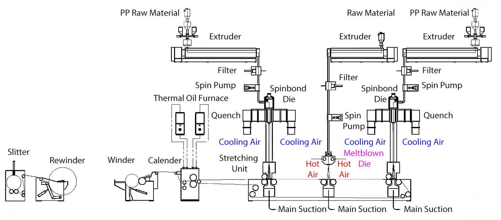 Spunmelt Composite Lines SMS, SMMS, SMMS, SSMMS